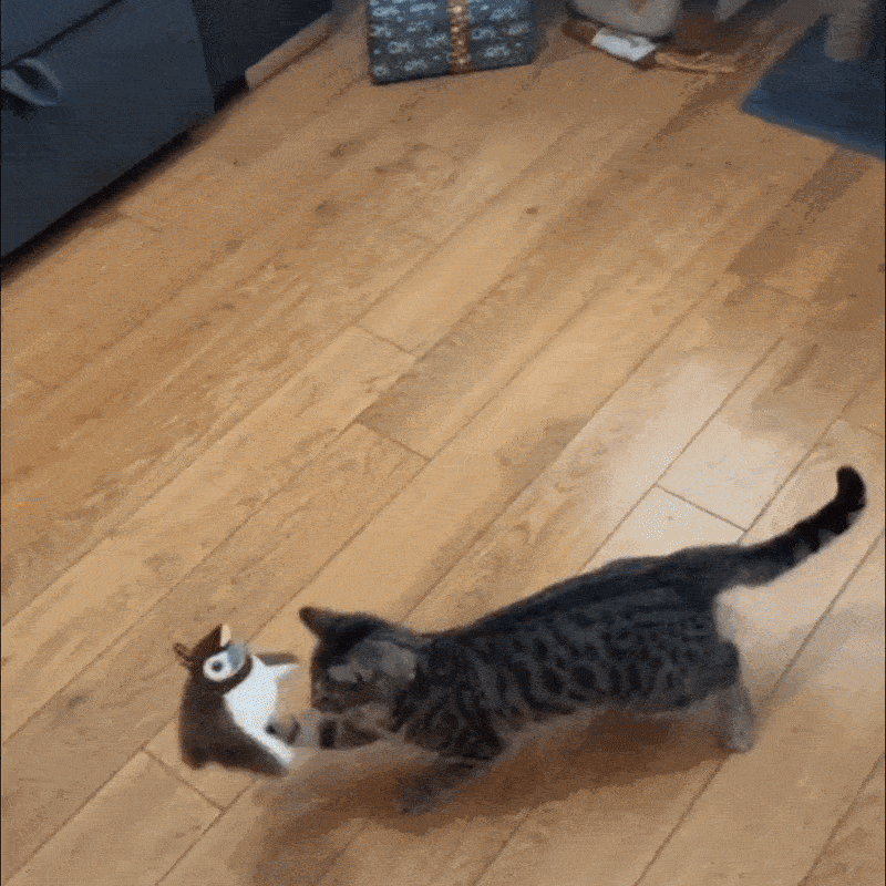 A:The flapping motion is safe for cats. While it is designed for independent play and is generally safe, we always recommend supervising your cat for the first few play sessions, especially with any electronic toy. This ensures they interact with it safely and don't try to consume any loose fibers or parts after an aggressive "catch."